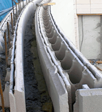 - Faible consommation en matériaux : un m² de blocs de parement Elco de 20 coffrant nécessite en moyenne 85 litres de béton et 4 kg de ferraillage.